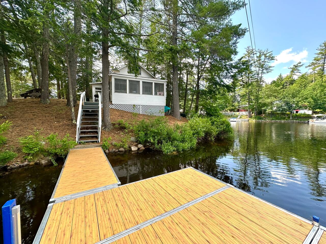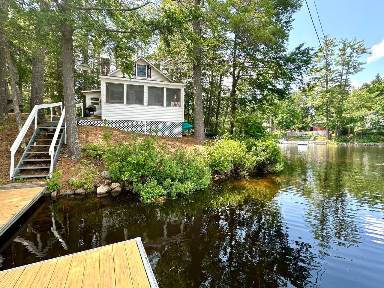 The cottage interior is charming and timeless Your accommodations include 2 bedrooms with full-sized beds, 1 full-sized pull out sofa in the living area. With a Smart TV, wireless internet, and a small kitchen, dining area and a full bathroom. The kitchen (though very small and not much counter space) has a full size fridge, microwave, coffee maker and stove. Pots and pans and always supplied with cooking utensils. There is also a propane grill available, and a newly installed dock to enjoy. Kayaks, canoe and paddle boards available for use. Less than 2 hours from Boston, MA and 45 minutes from Portland ME. Fantastic location on Lower Mousam not far from the Mousam Bridge and Acton Trading Post. Easy drive to coastal beaches, shopping, antiques, hiking, endless opportunities to explore our beautiful State of Maine. Other things to note This is a seasonal property so as the temperatures cool off, want to inform guests there is no heat in the bedrooms.