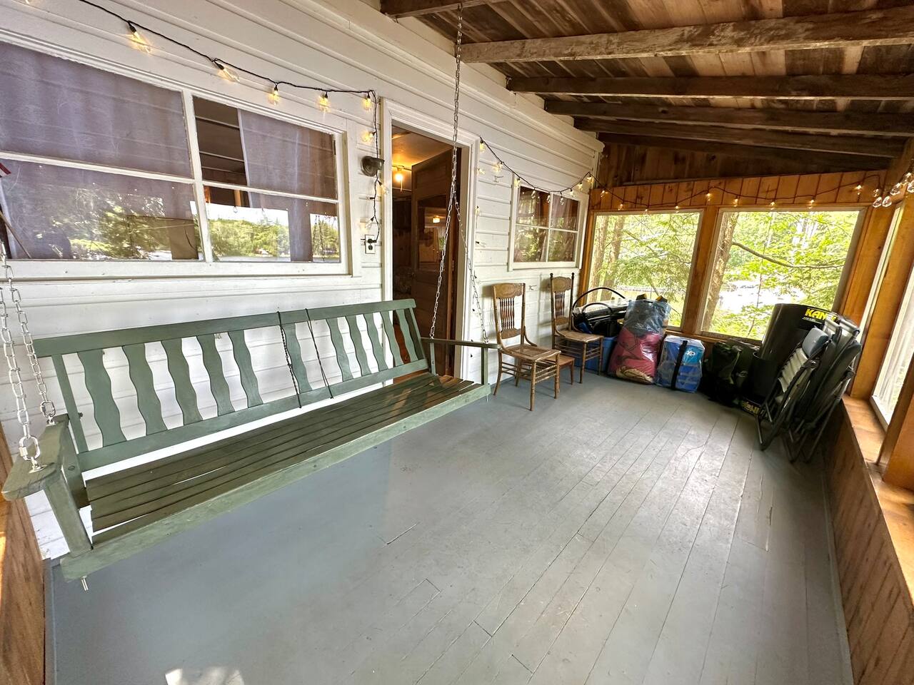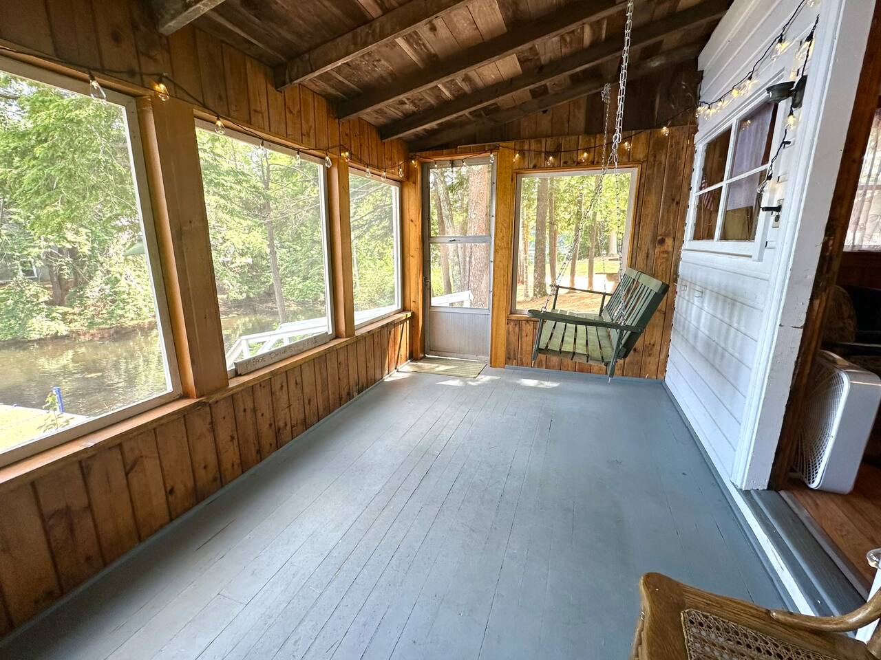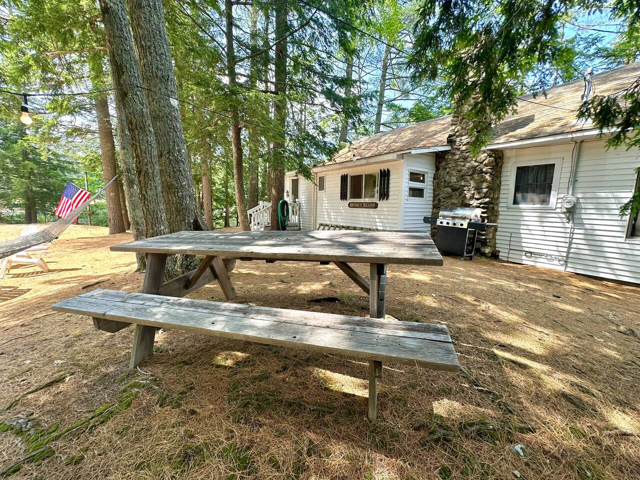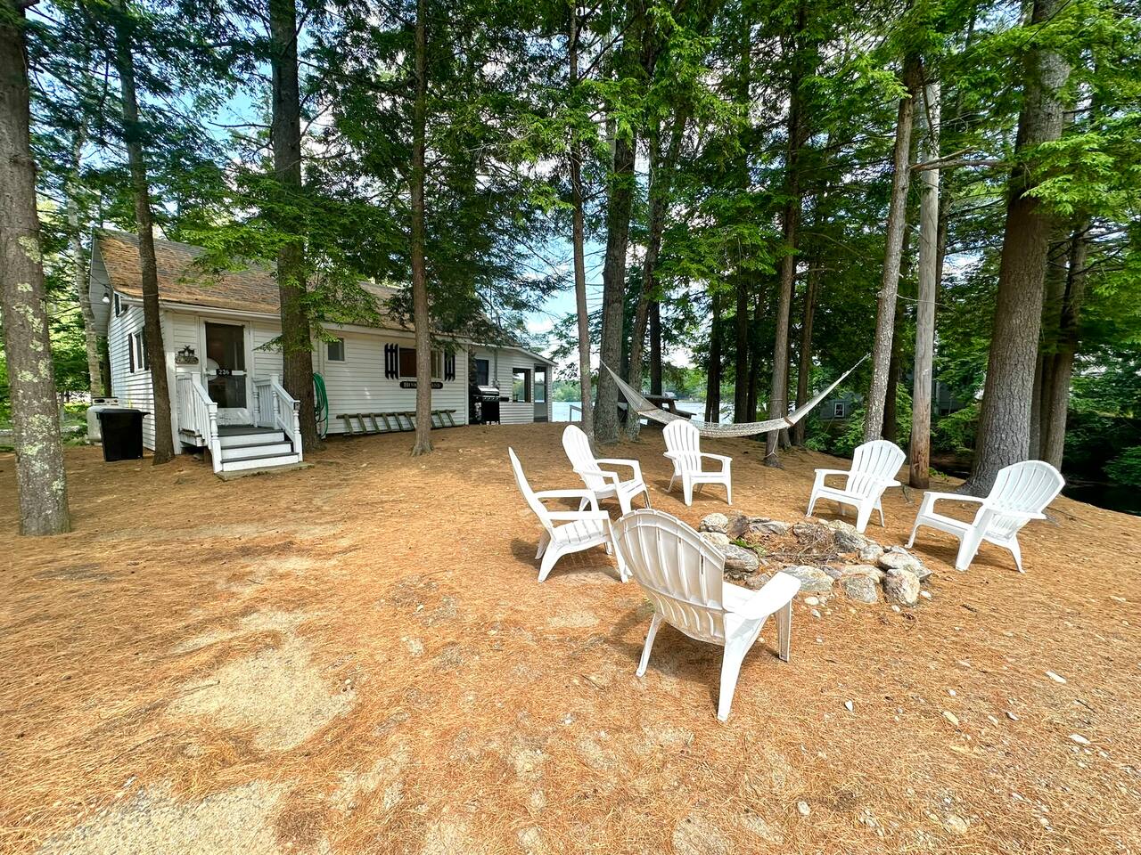 Nestled on the Water’s Edge is a charming Lakeside Retreat boasting sweeping views of Mousam Lake. This camp is a place to kick back, relax and leave your worries behind. The views from the front screened in porch and picnic area are what many guests come here for, especially to see those stunning sunrises. After a day of swimming, canoeing and relaxing in the hammock, end the day star gazing and roasting marshmallows around the outdoor fire pit.
