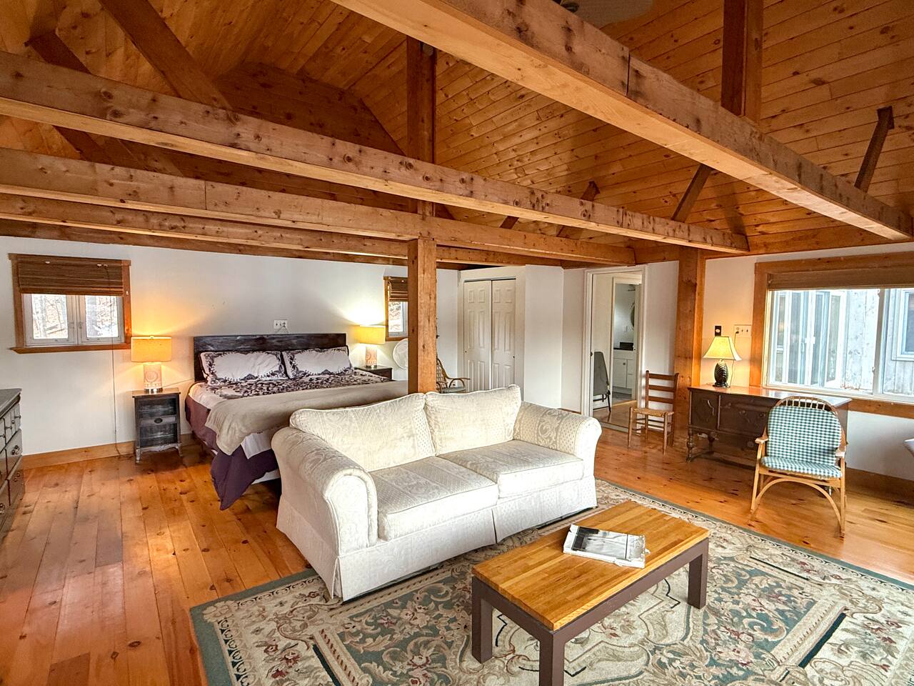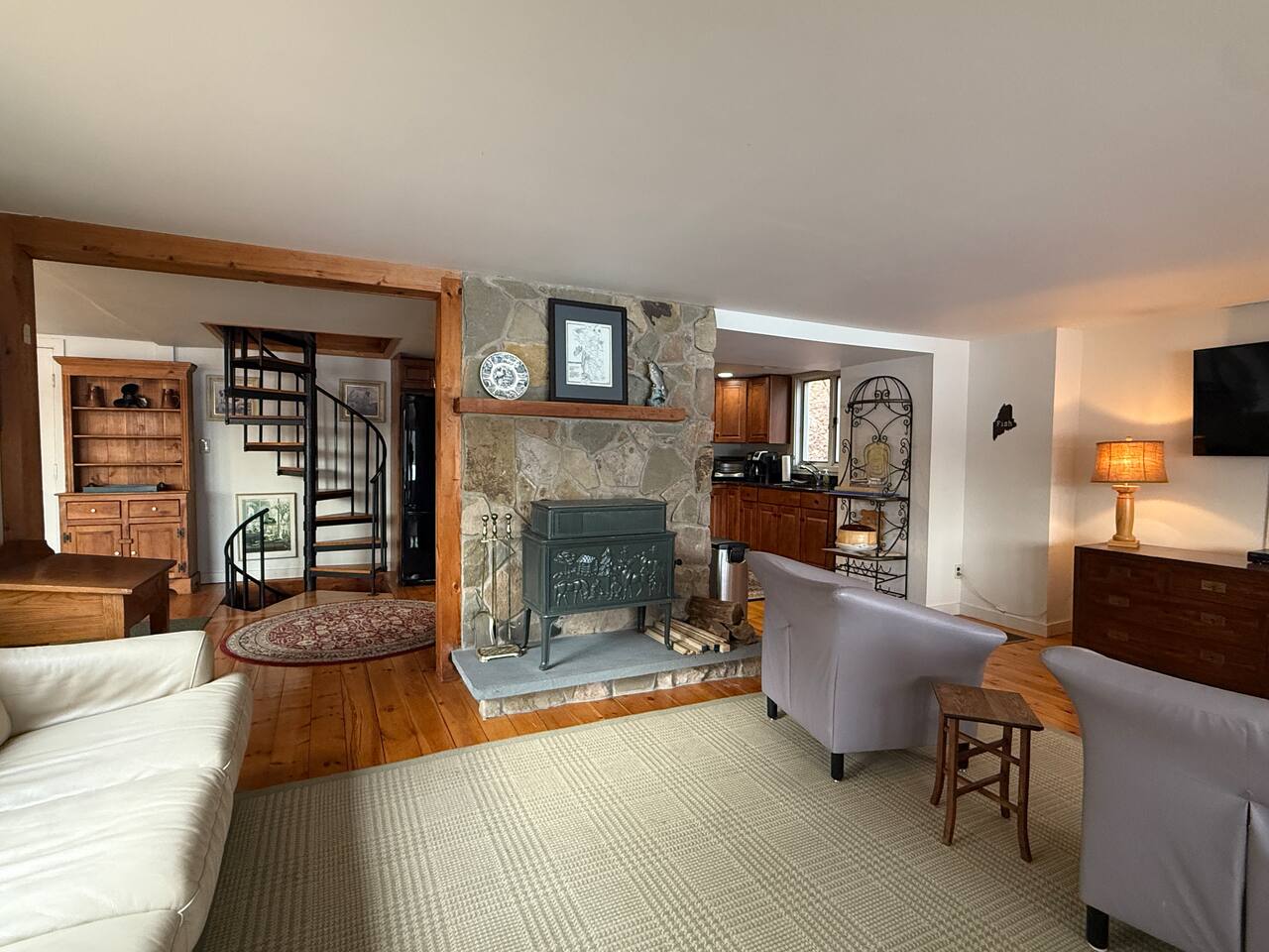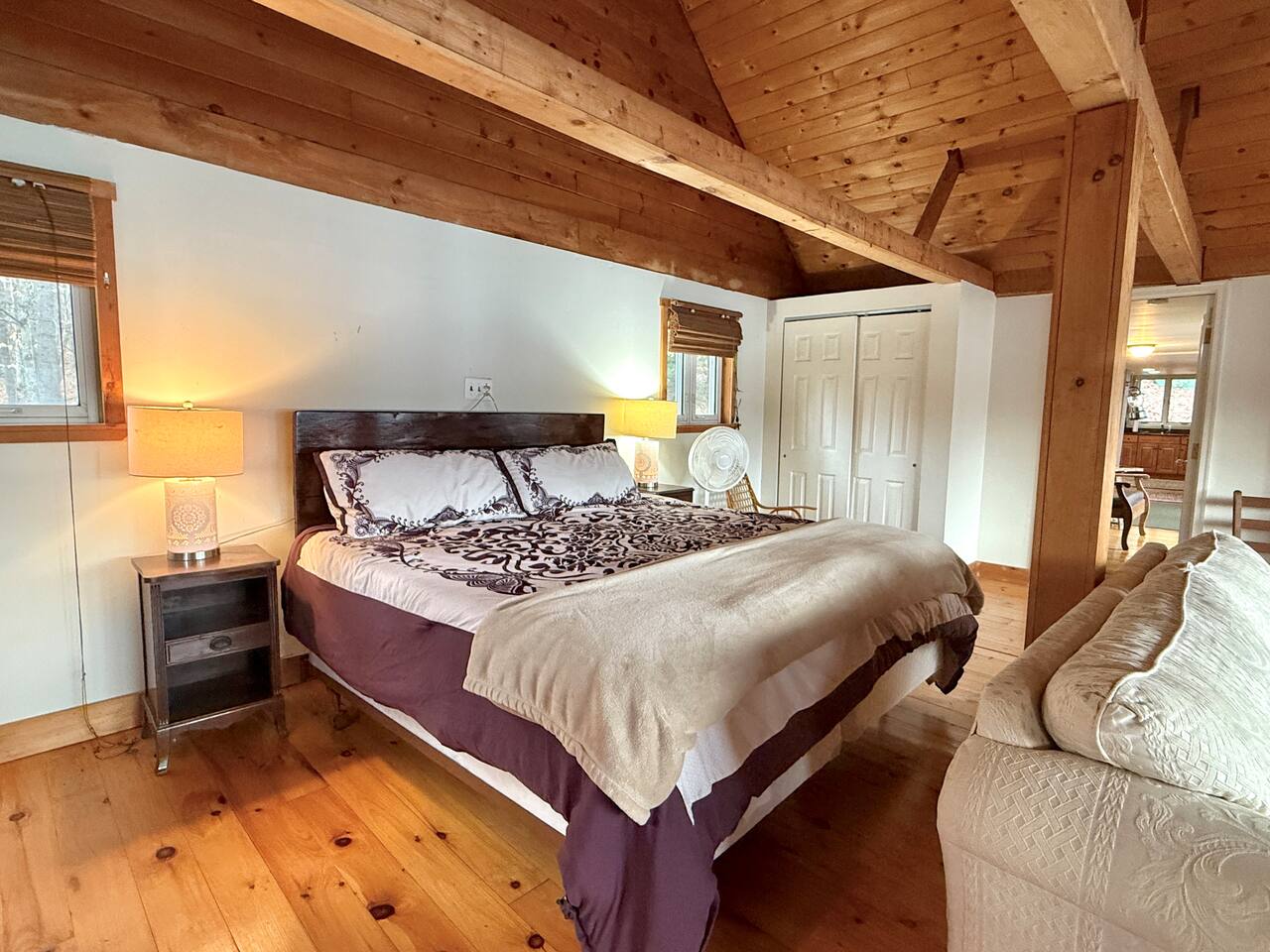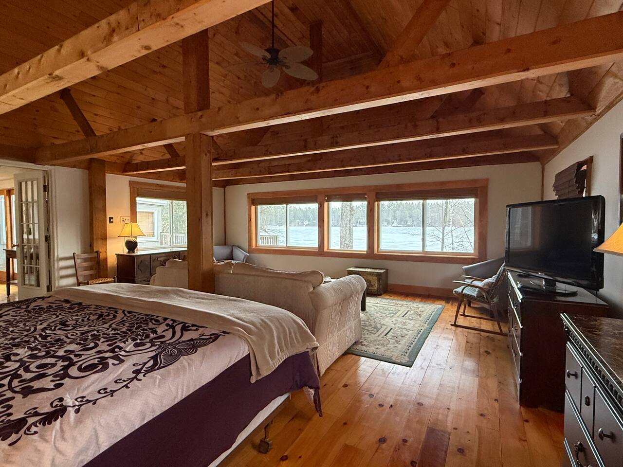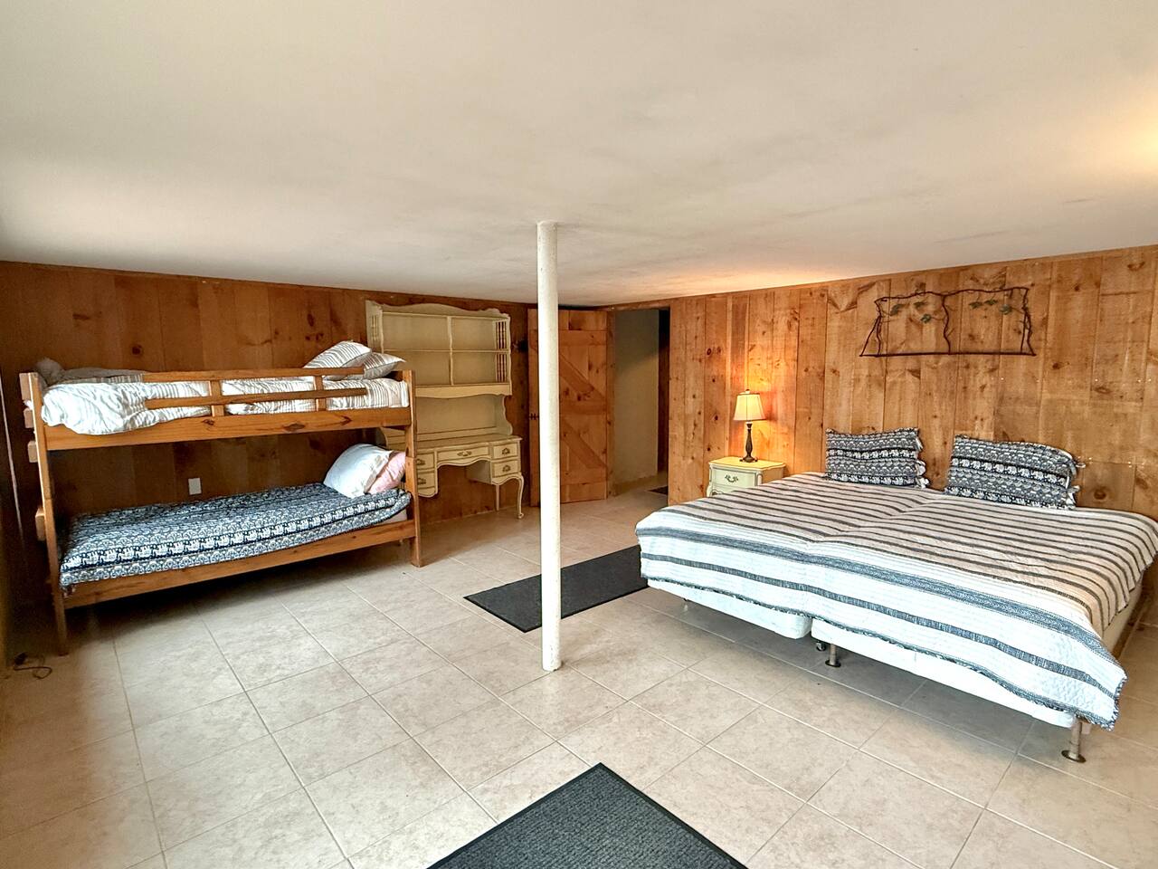 Welcome to your private escape on Mousam Lake! This spacious 3BR/2BA lakefront home offers 150 ft of waterfront, a level yard, and the perfect setting for relaxing and reconnecting. Inside, enjoy a fully stocked kitchen with granite countertops flowing into an open living and dining area with beautiful lake views. The first-floor primary bedroom and full bath offer easy, single-level living, while the second-floor retreat features vaulted ceilings, exposed beams, and peaceful lake views. The walk-out lower level includes a large bunk room with multiple beds and direct access to the waterfront—perfect for kids or groups. Outside, unwind by the firepit, enjoy the gradual shoreline, or spend your days swimming, kayaking, and soaking in the quiet, wooded surroundings. What Guests Love... - 150 ft of private waterfront - Level lot + easy water access - Firepit by the lake - Open-concept living with lake views - Vaulted ceilings + character details - Walk-out lower level bunk room (great for families/groups) - Peaceful, wooded setting