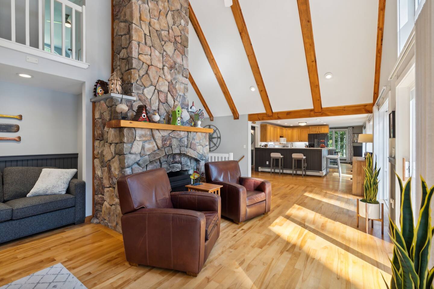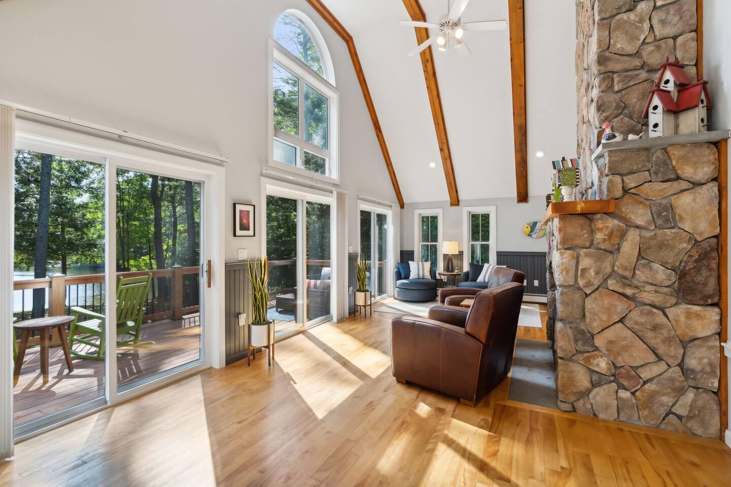 Escape to this stunning 5-bedroom, 3-bath home with 207 feet of private waterfront on Lake Arrowhead. Enjoy swimming, kayaking, and fishing from your private dock. Inside, find vaulted ceilings, a grand stone fireplace, and a large deck with panoramic lake views. The gourmet kitchen and luxurious primary suite with a private deck offer ultimate comfort. Access community amenities like an indoor and outdoor pool, a game room and a fitness center. Perfect for relaxation and adventure!